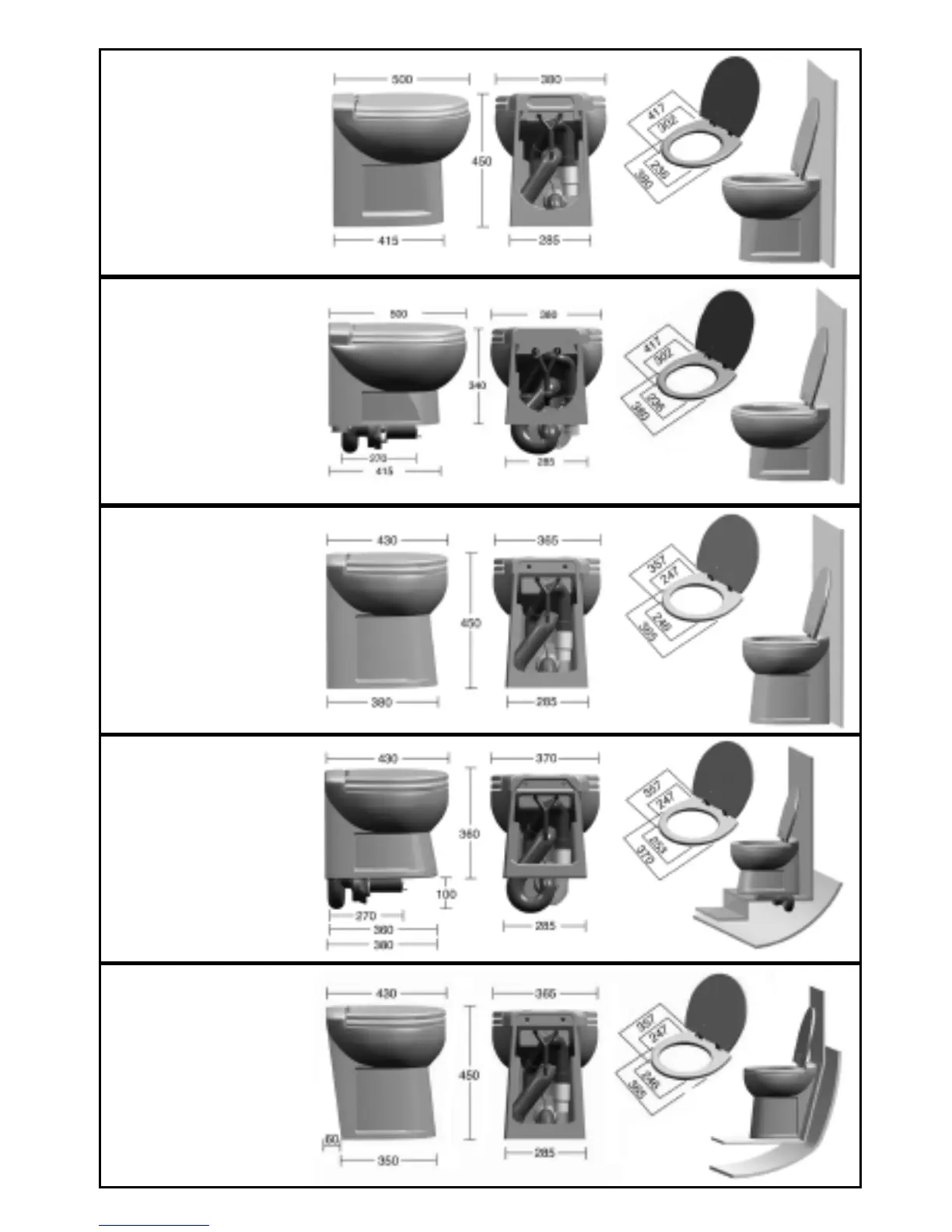 Tecma Silence - Model Dimensions; Silence Series Dimensions; Silence Standard Cut Dimensions