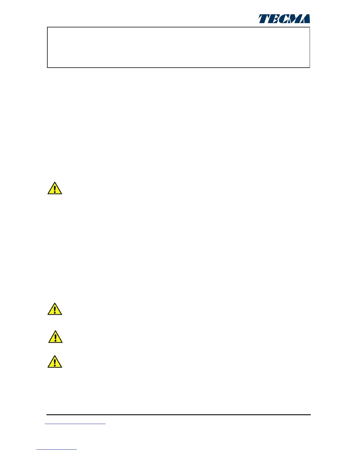 Les produits Tecma avec moteur 110V/230V sont prévus avec une fiche à raccorder à l’alimentation.