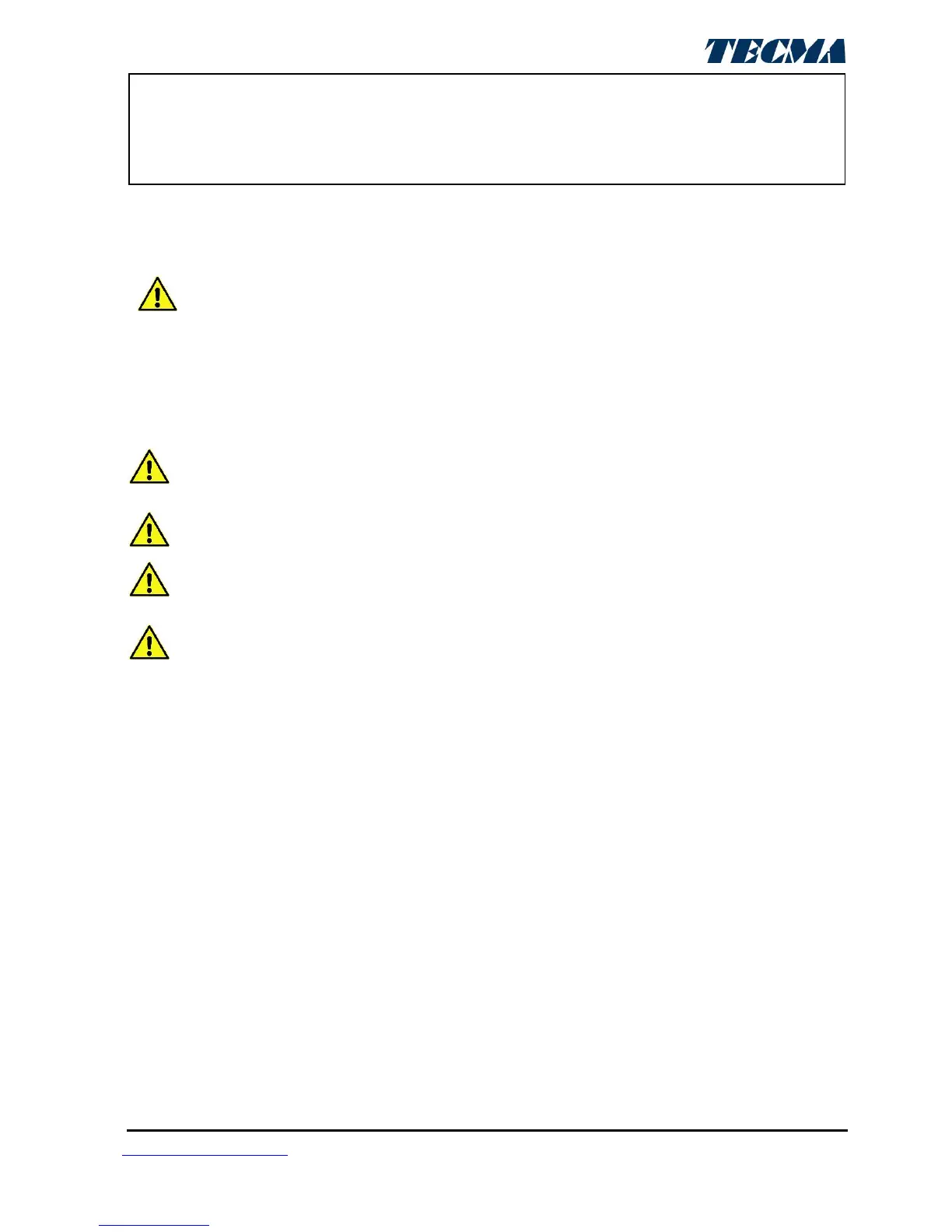 Non apportare nessun cambiamento al prodotto Tecma, questo potrebbe risultare in una eventuale