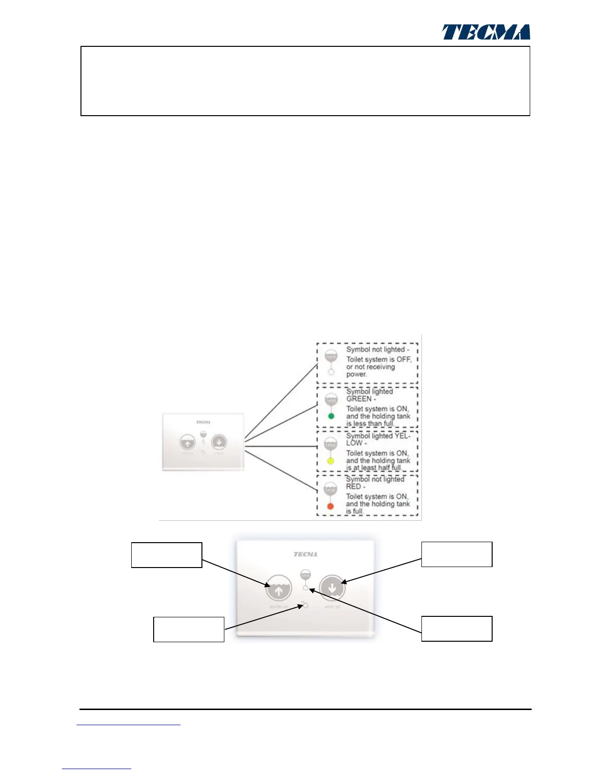 The control panel is equipped with a 3-colour LED, which indicates the blackwater tank level. As