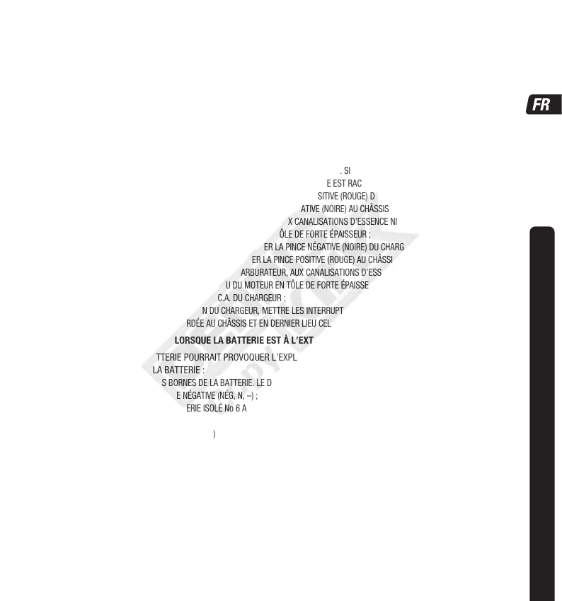 DE LA BATTERIE. NE PAS RACCORDER LA PINCE AU CARBURATEUR, AUX CANALISATIONS D’ESSENCE NI AUX PIÈCES DE LA CARROSSERIE