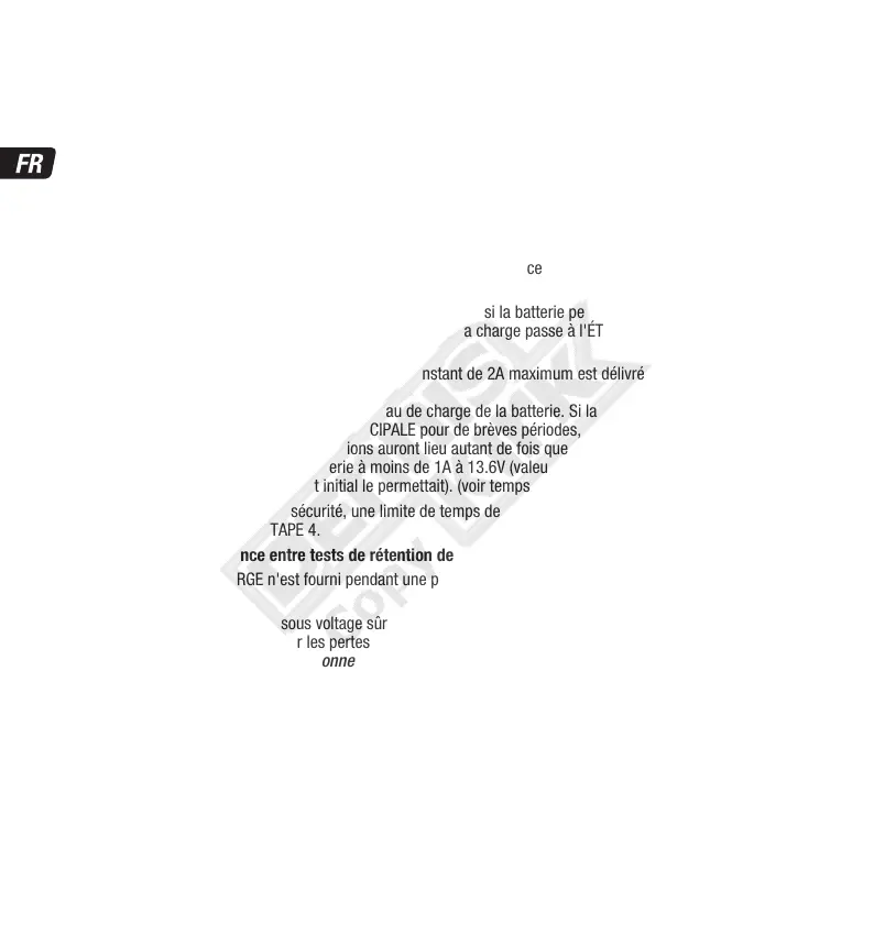 jusqu'à 1A est fourni par pulsations en vue de préparer la batterie à accepter une charge normale.