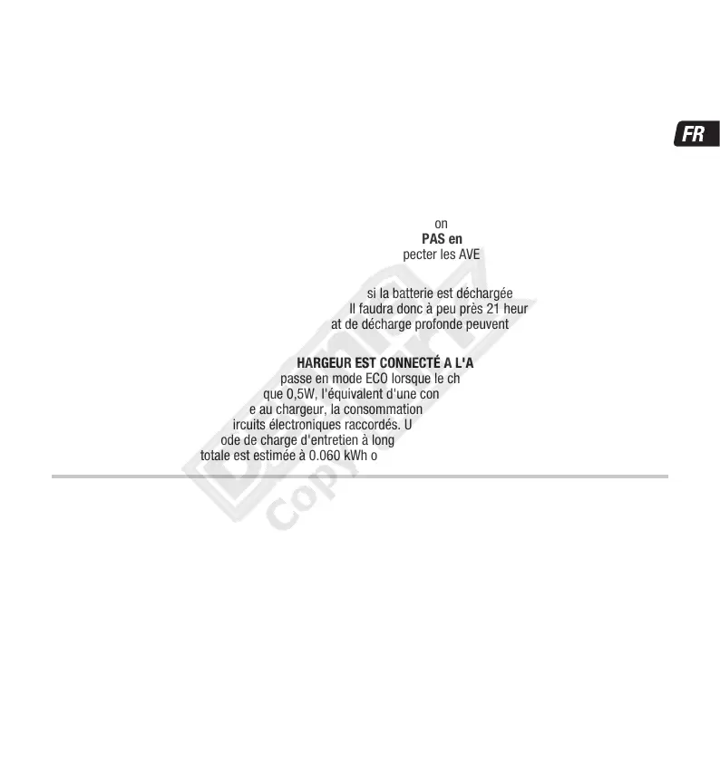 MODE ÉCONOMIE D'ÉNERGIE LORSQUE LE CHARGEUR EST CONNECTÉ A L'ALIMENTATION SECTEUR :