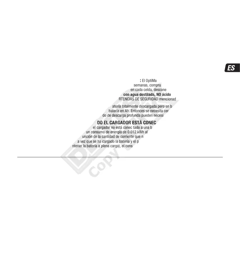 consumen corriente dentro del circuito. Desconecte OptiMate del suministro de CA y la batería. A continuación: