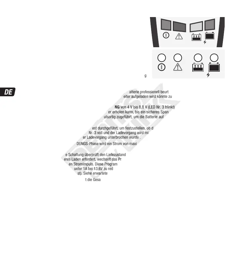 kann. In diesem Fall leuchtet die LED Nr. 3 voll und der Ladevorgang wird mit SCHRITT 3 fortgesetzt. Wenn nicht, blinkt die