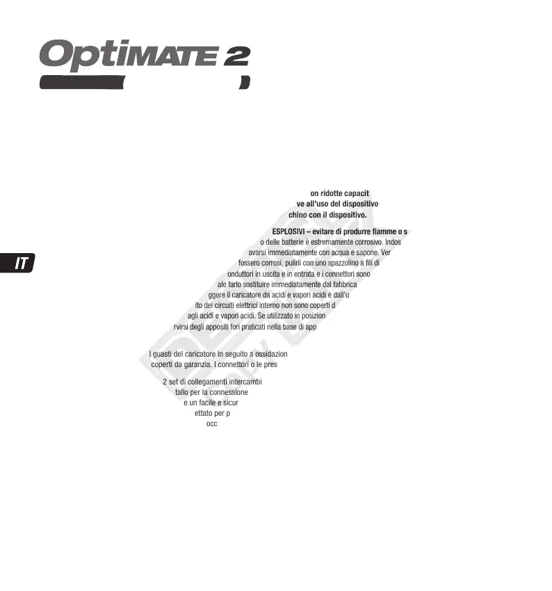 danni dovuti alla corrosione, ossidazione o corto circuito dei circuiti elettrici interno non sono coperti da garanzia. Distanziare il caricatore dalla batteria durante la
