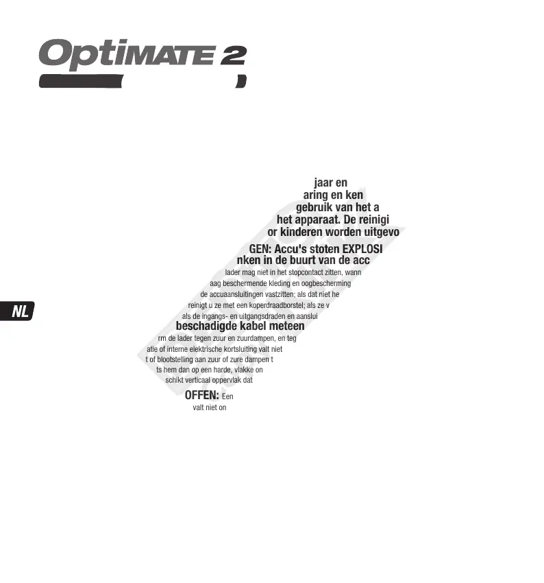 De stekker van de lader mag niet in het stopcontact zitten, wanneer gelijkstroom-/accuverbindingen gemaakt of