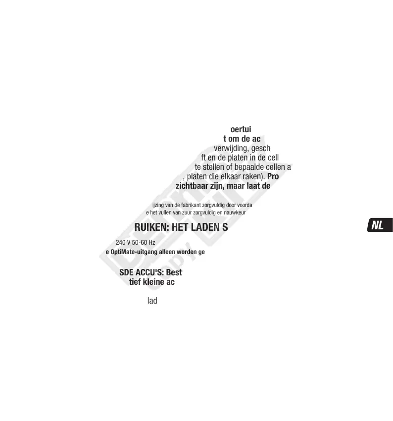 Fom veiligheidsredenen zal de OptiMate-uitgang alleen worden geactiveerd als er een accu met een minimumspanning van
