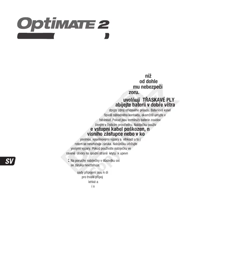korozí, oxidací nebo vnitřním elektrickým zkratem se nevztahuje záruka. Nabíječku udržujte během nabíjení baterie v dostatečné vzdálenosti, aby nedošlo ke