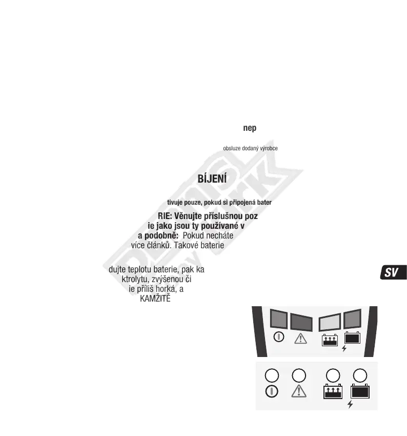 - OCHRANA PŘED OBRÁCENÍM POLARITY - rozsvítí se při nesprávném