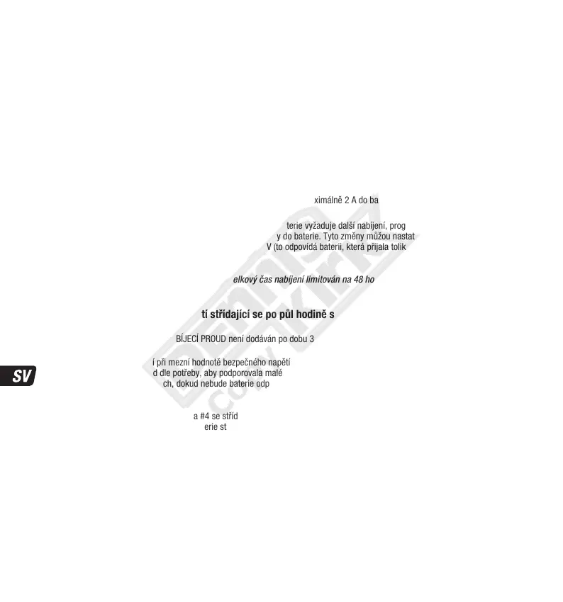 do hodnoty 1A je dodáván v pulsech pro přípravu baterie na akceptování normálního nabíjení. Čas nabíjení: Minimum 15