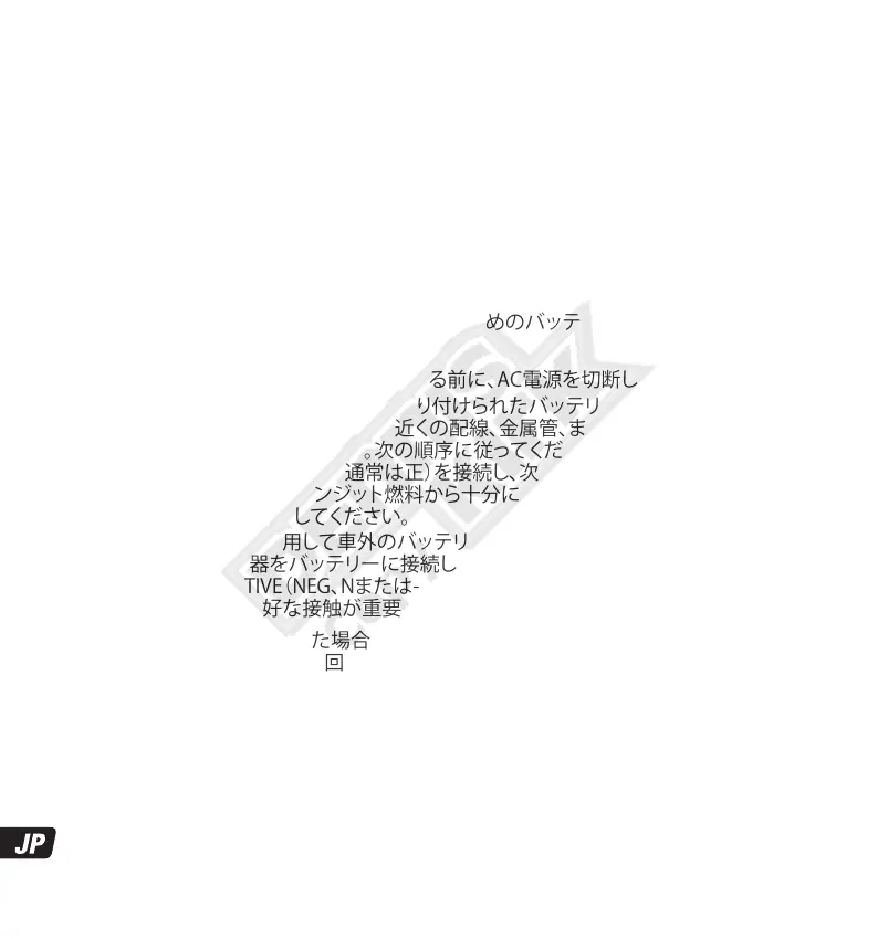 置いてください。充電器をバッテリーに接続します。POSITIVE端子(POS、Pまたは+)の