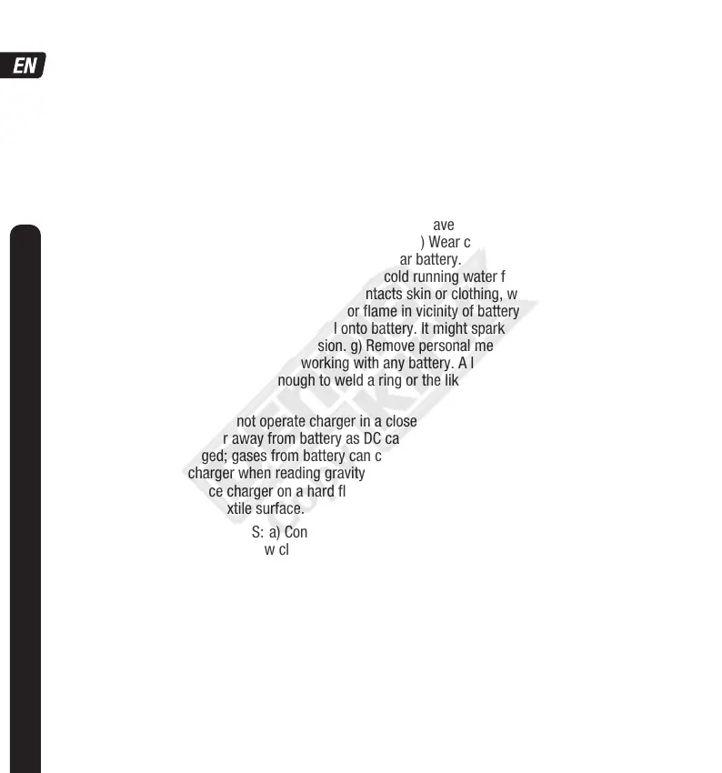 soap & water. e) NEVER smoke or allow a spark or flame in vicinity of battery or engine. f) Be extra