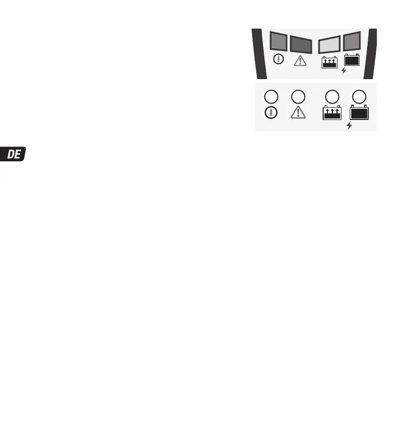LED 2: VERPOLUNGSSCHUTZ: – Leuchtet auf, wenn die Batterie falsch