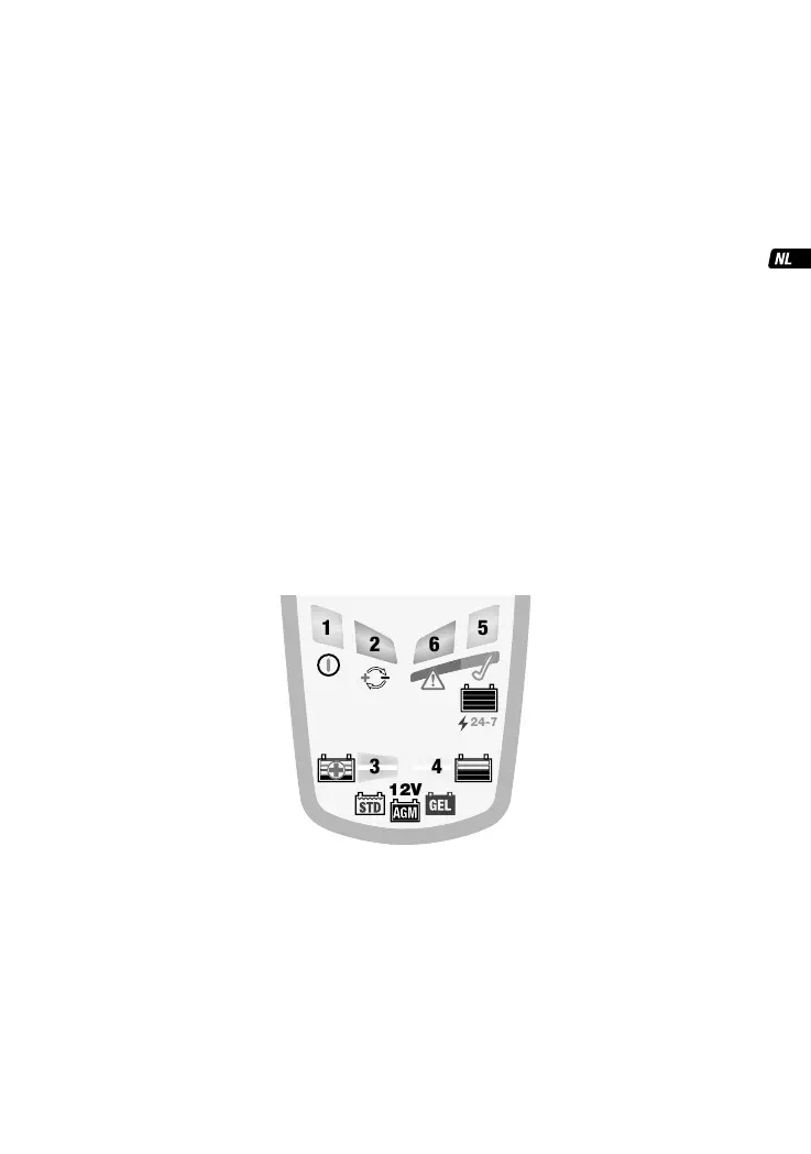 3. Led #3 RECUPERATIE licht op als de accuspanning 2 V tot 12,4 V bedraagt bij het aansluiten, wat erop
