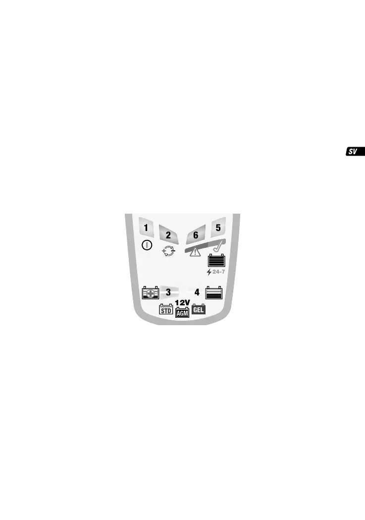 4.1 LADDNING: Laddning påbörjas här för batterier med styrkan 12,4 V vid anslutning. Batteriet förses