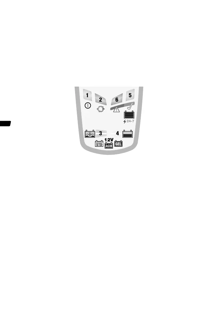 4.1 CHARGE: 從此處開始對連接時測量為 12.4V 的電池充電。向電池輸送