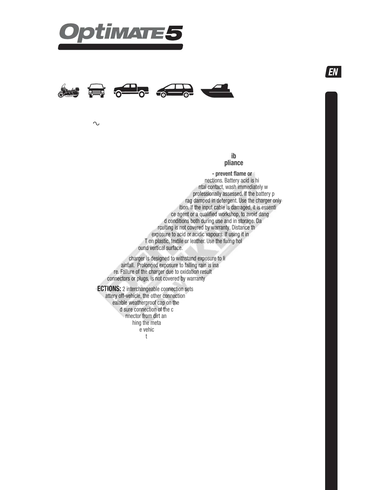 5. If the battery is new, before connecting the charger read the battery manufacturer’s safety and operational instructions