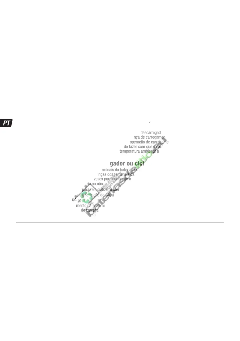alimentação de CA 220-240V antes de retirar as pinças dos terminais da bateria. Ao voltar a ligar à potência de CA, todos os