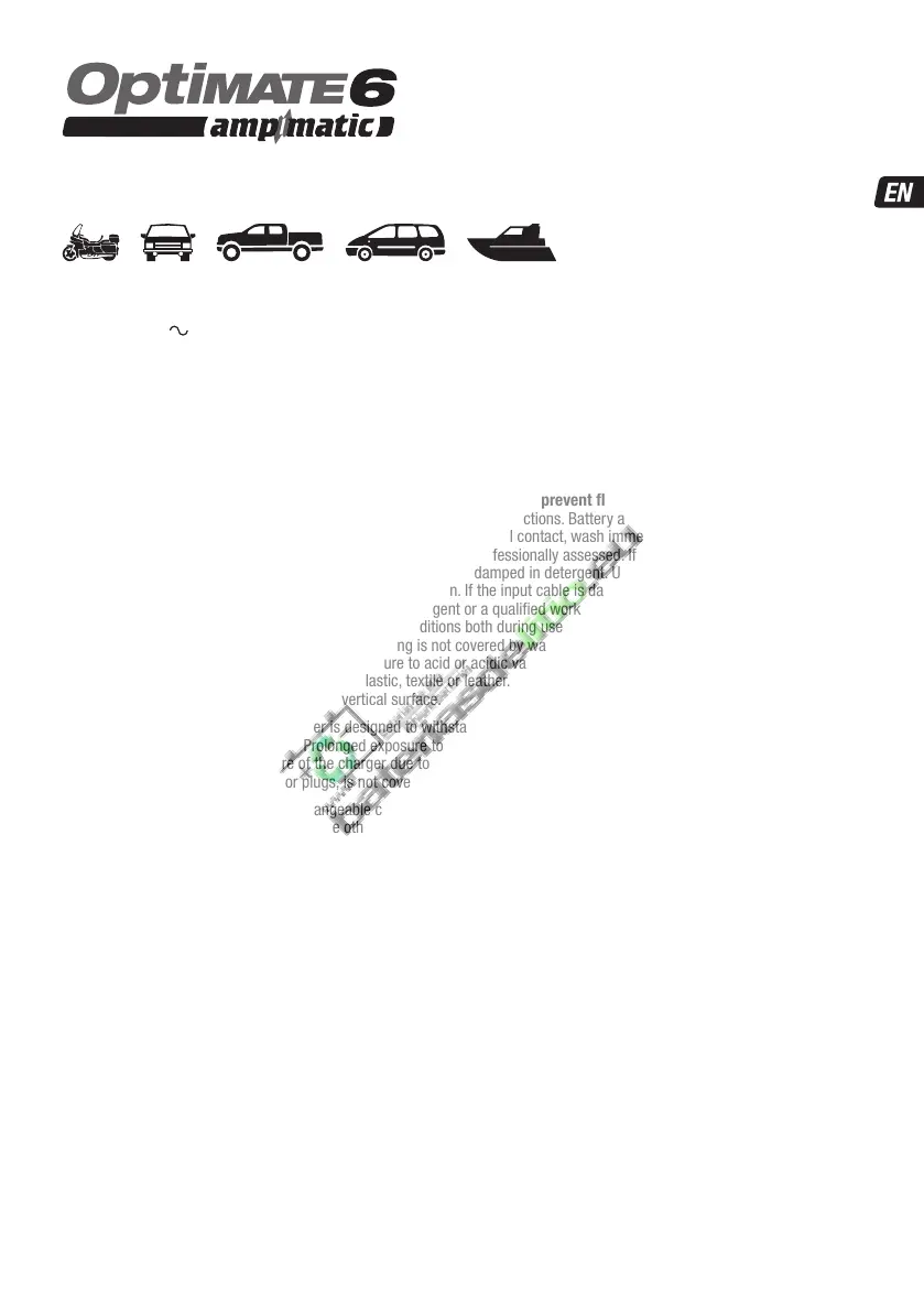 corrosion, oxidation or internal electrical short-circuiting is not covered by warranty. Distance the charger from the battery