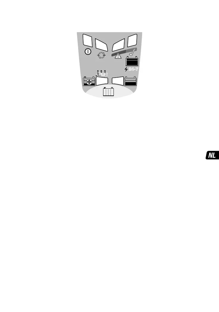 Led #3 RECUPERATIE: deze modus wordt ingeschakeld als de accu meer dan 90% ontladen is/de
