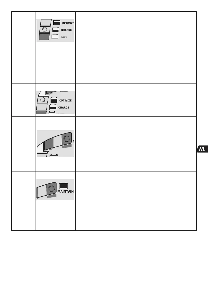 de gemeten accuspanning. Raadpleeg de tabel ‘VROEGE TEKENEN VAN