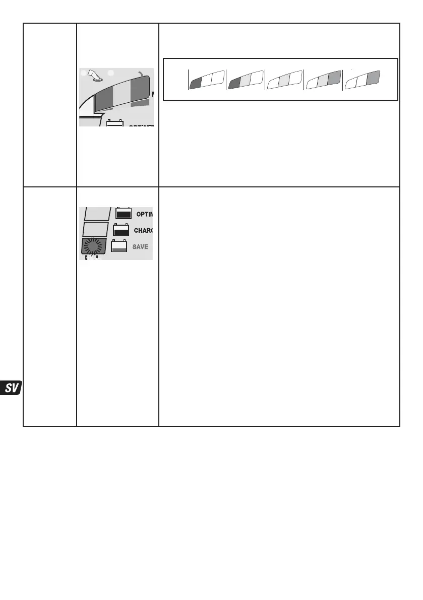 spänningen understiger 12,8 V. safeTº: Laddningsströmmen justeras