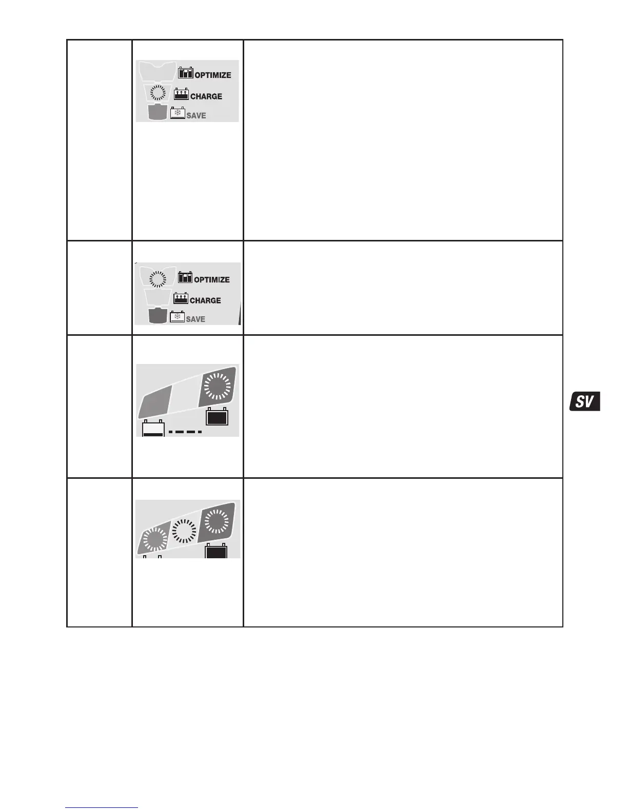 Läget OPTIMIZE (Optimera) startar när spänningen når 14,4 V (18 V) för första
