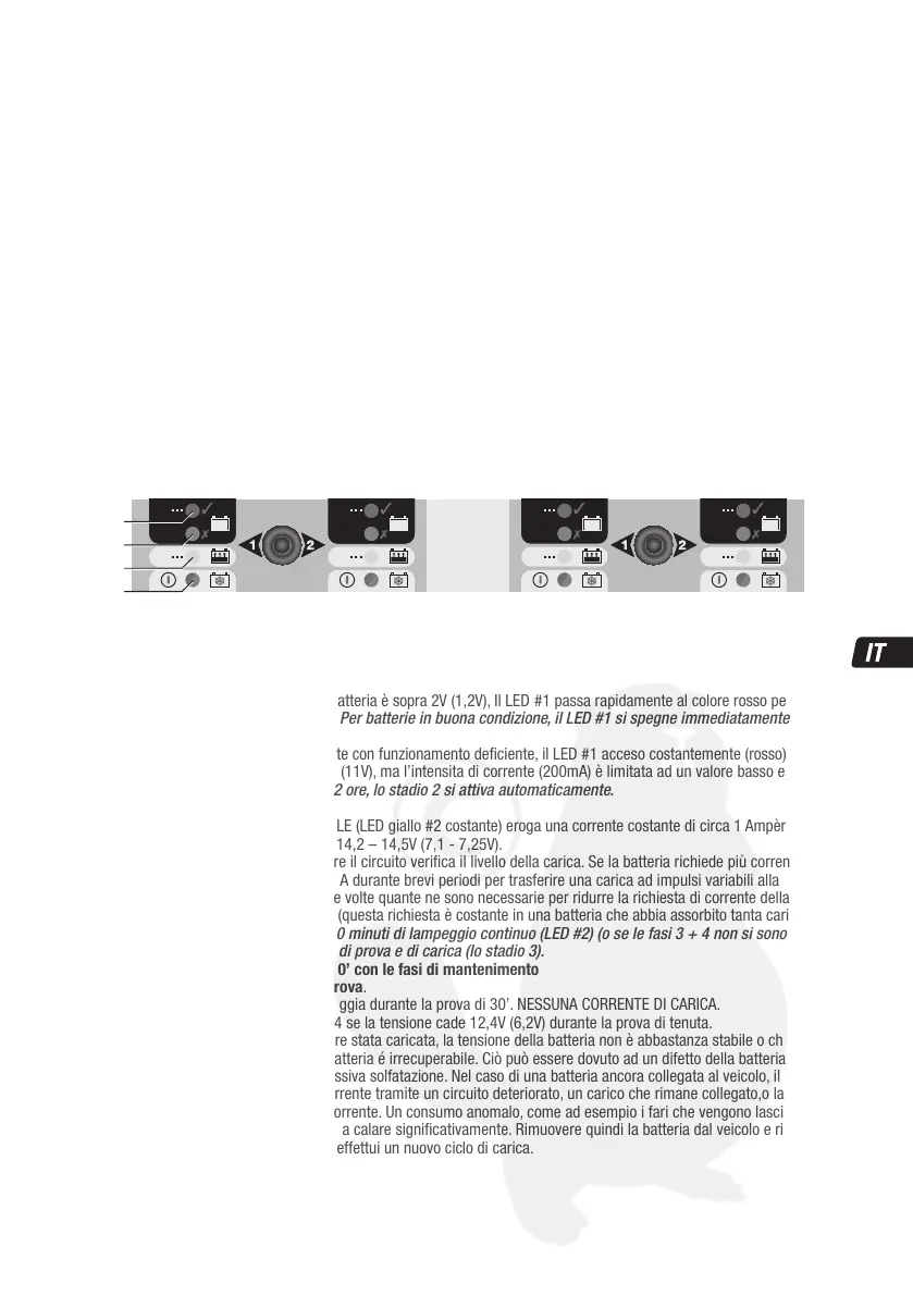 1.2 RECUPERO – per le batterie trascurate con funzionamento defi ciente, il LED #1 acceso costantemente (rosso). La