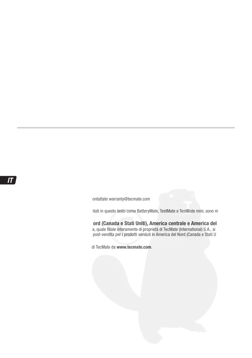 NOTA: Vede www.tecmate.com/warranty o contattate warranty@tecmate.com