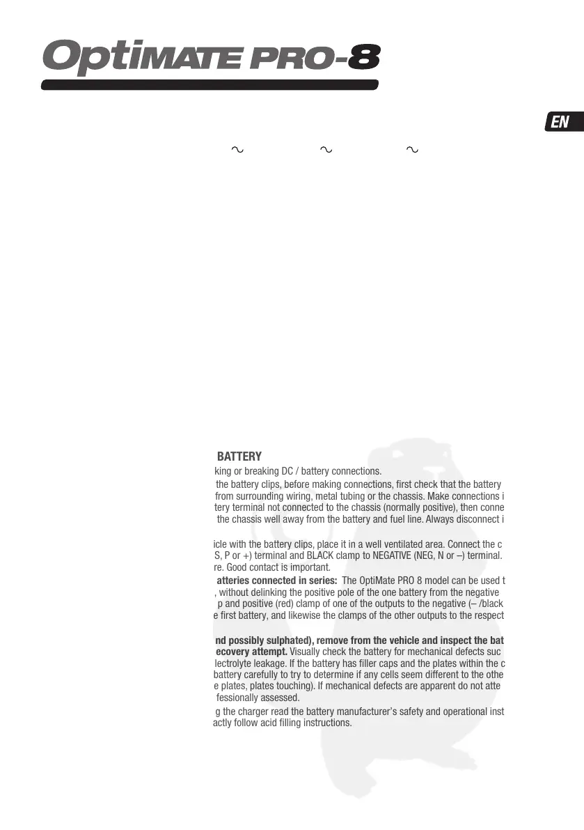 6. If the battery is new, before connecting the charger read the battery manufacturer’s safety and operational instructions