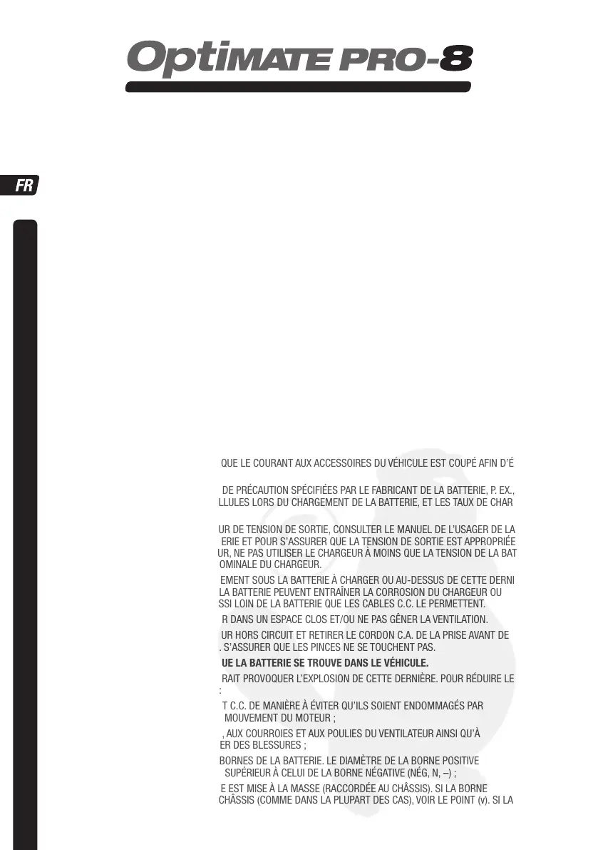 L’ENDOMMAGER. PLACER LE CHARGEUR AUSSI LOIN DE LA BATTERIE QUE LES CABLES C.C. LE PERMETTENT.