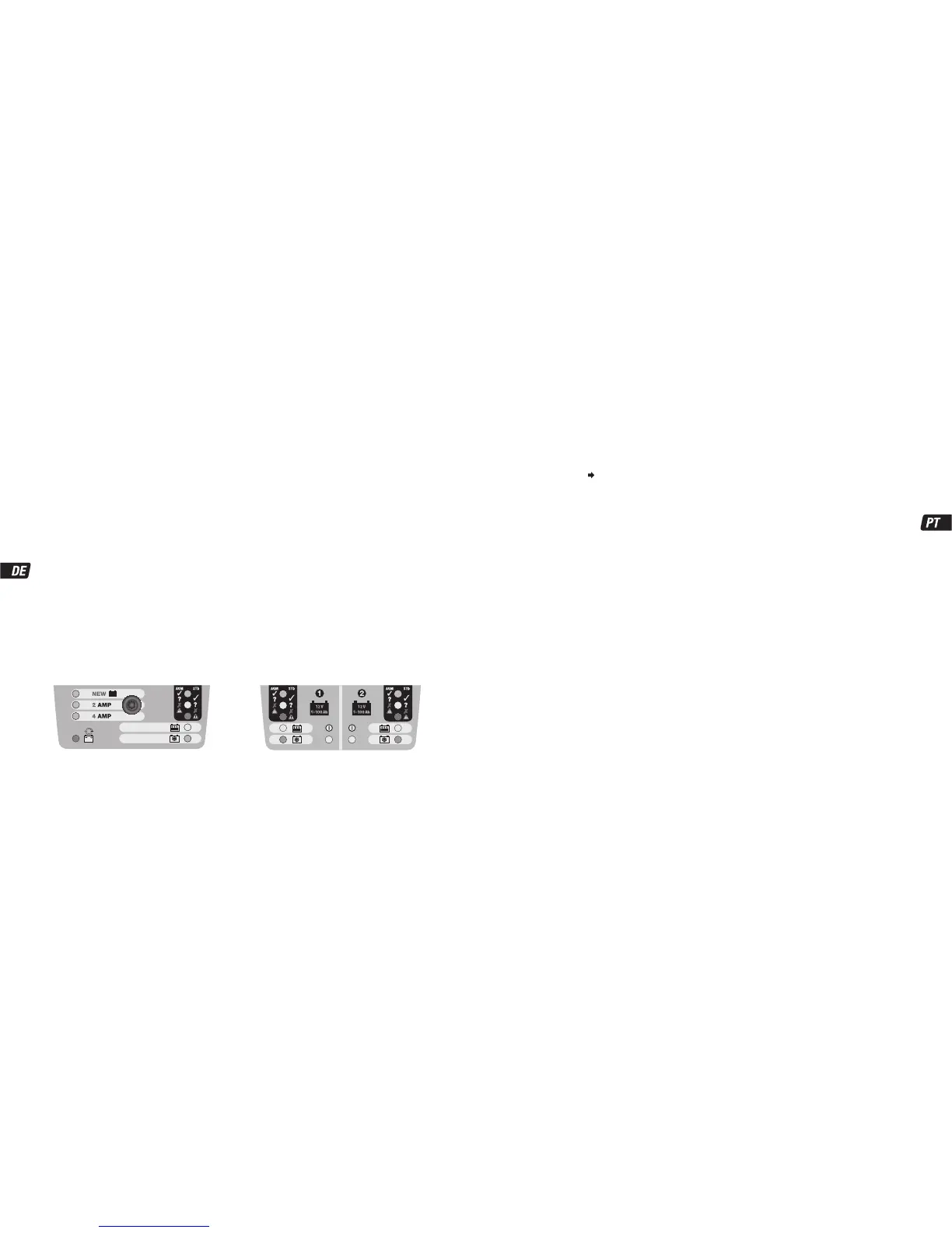 NOTA: Apenas OptiMate PRO-S: Caso o comutador de selecção de carregamento seja comutado entre NOVO e 2/4A, o