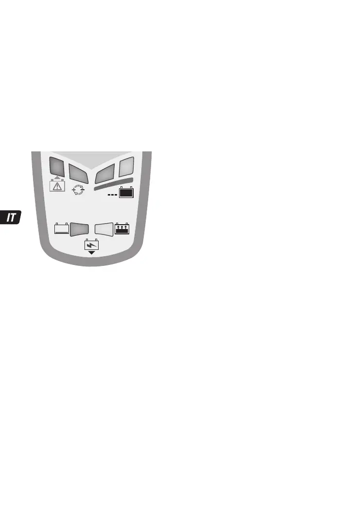 LED n. 1 completamente acceso dopo la fase di avvio/durante la ricarica - Avverte che la tensione della batteria DI ALIMENTAZIONE è