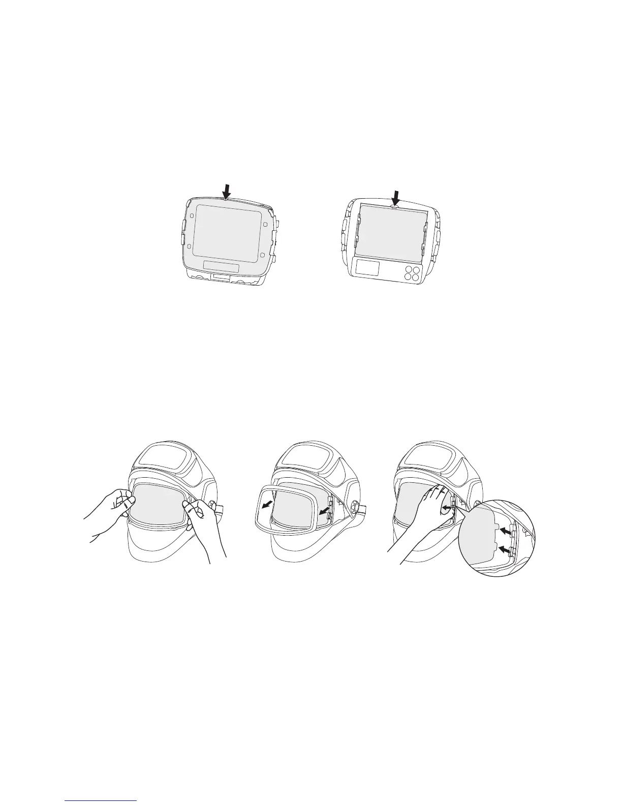 out of the hole in the band. Slide the two portions of the band to a greater or lesser width