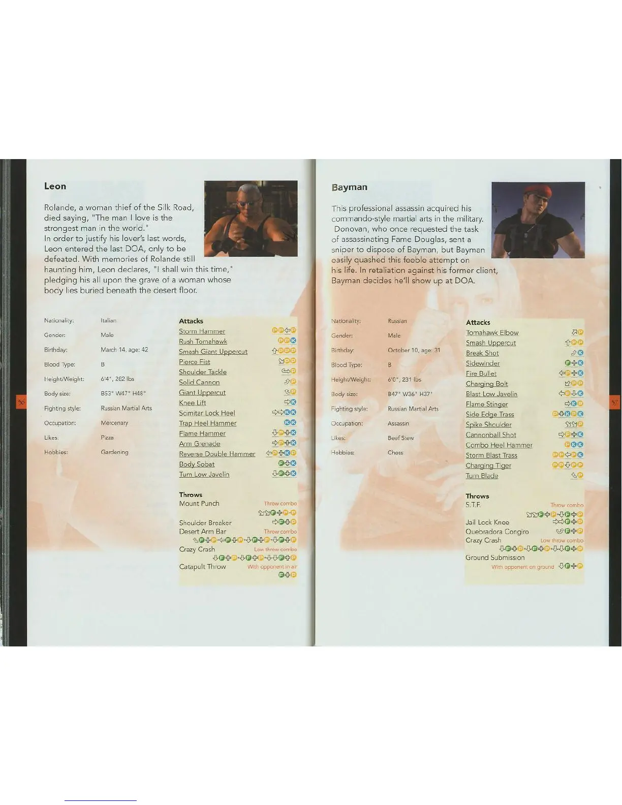 Tecmo DEAD OR ALIVE 3 - Leon and Bayman Profiles; Leons Background and Moveset; Baymans Background and Moveset