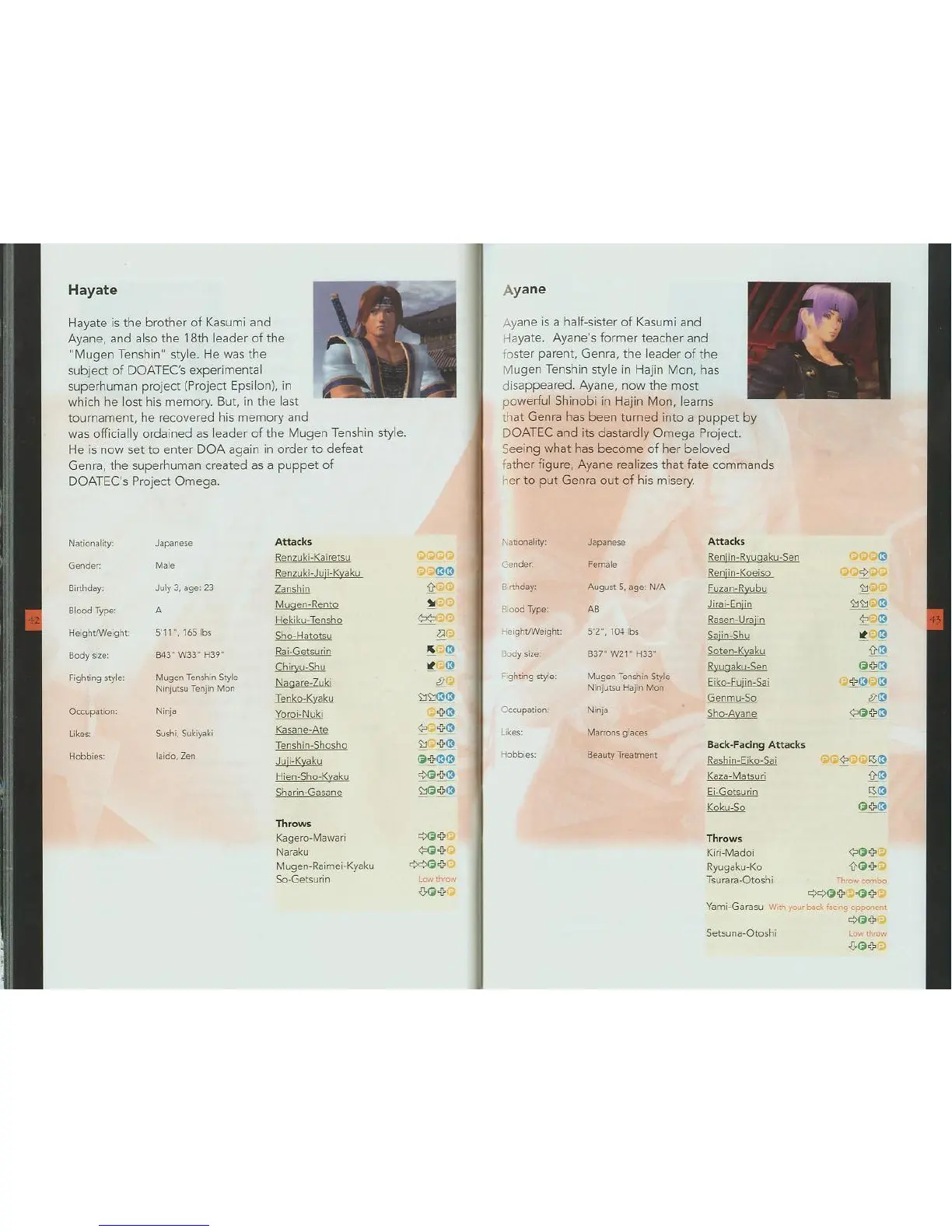 Tecmo DEAD OR ALIVE 3 - Hayate and Ayane Profiles; Hayates Background and Moveset; Ayanes Background and Moveset