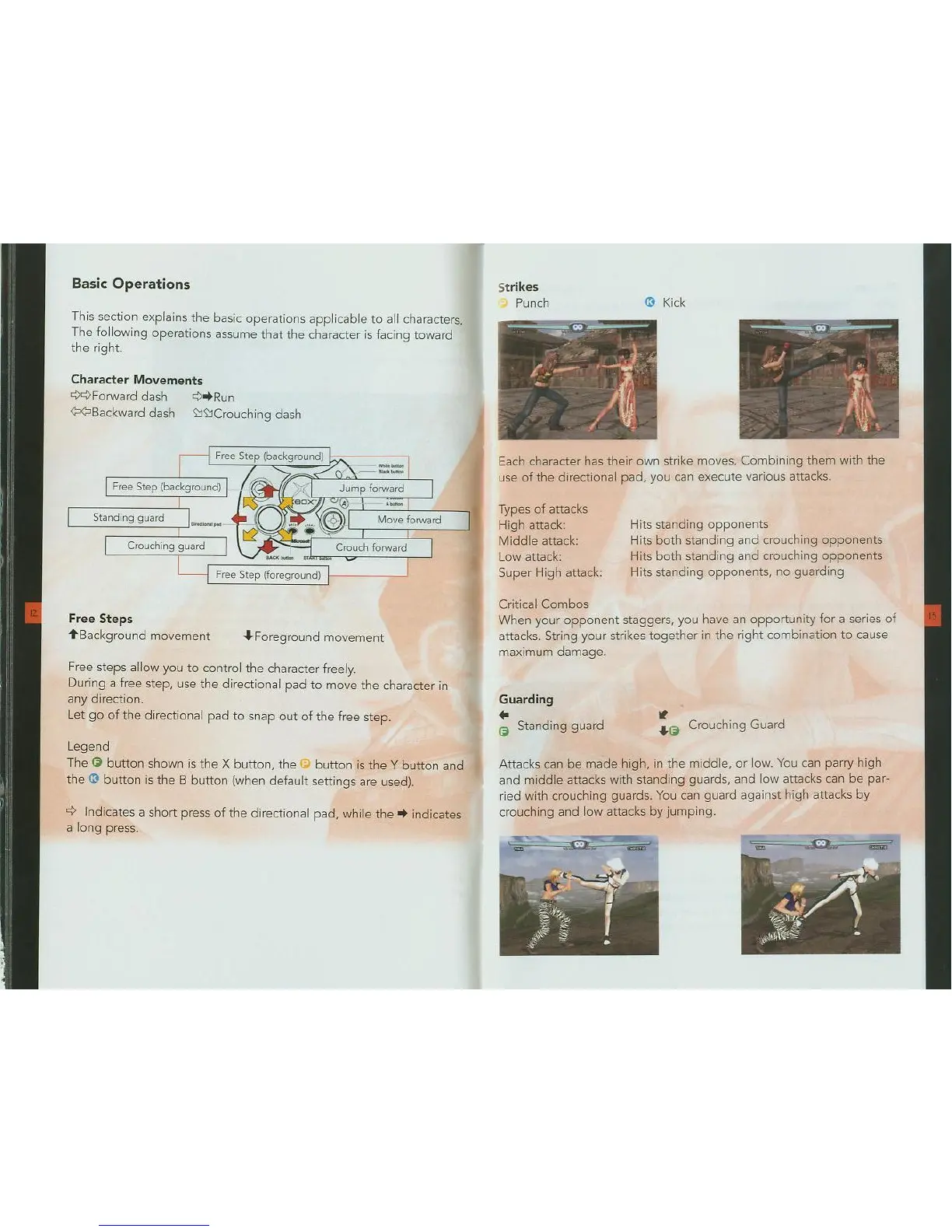 Tecmo DEAD OR ALIVE 3 - Basic Combat Operations; Character Movement and Guarding; Attack Types and Combos