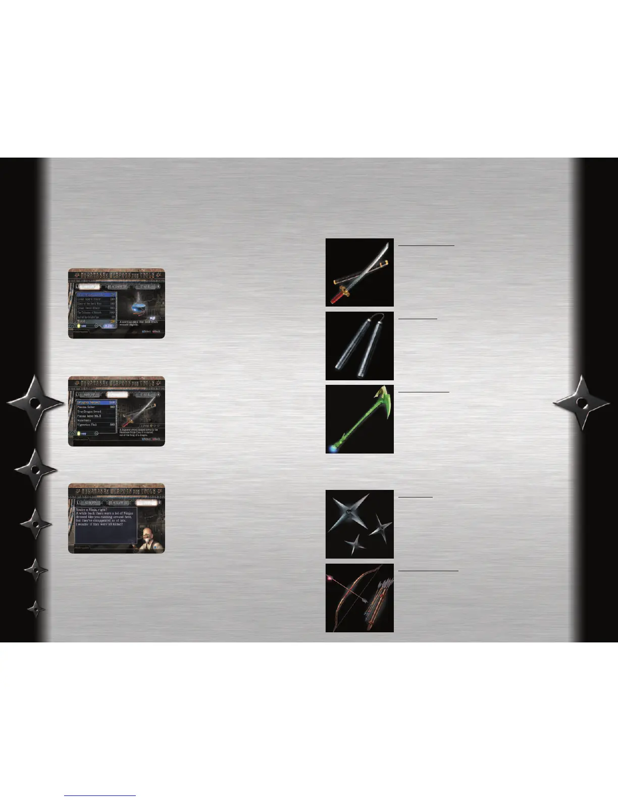 variety of items. There are 3 categories on the Weapon Shop menu: