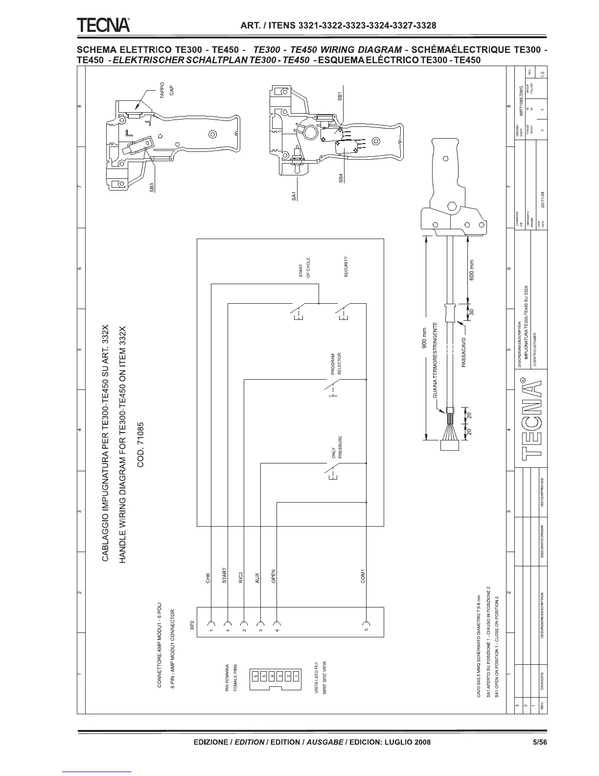 TECNA 3322 - Electrical Schematics; Handle Wiring Diagram; TE300;TE450 Electrical Schematic