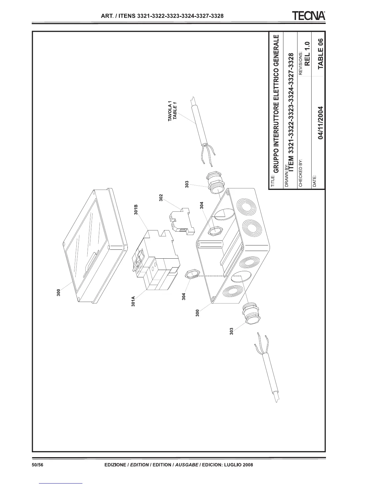 TECNA 3322 - Table 06: General Electrical Switch Group Components