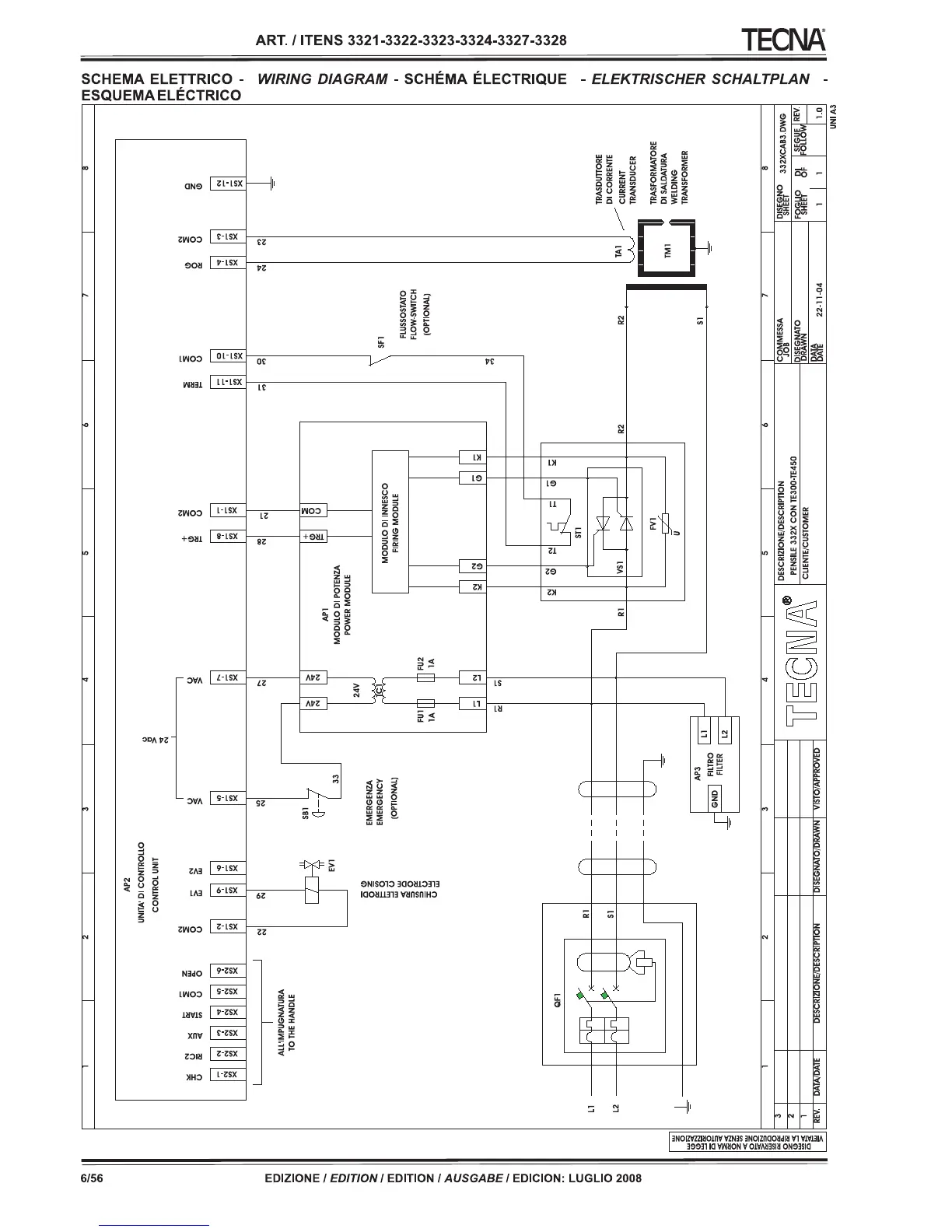 TECNA 3322 - Control Unit and Power Module Connections; Firing Module and Transformer Connections
