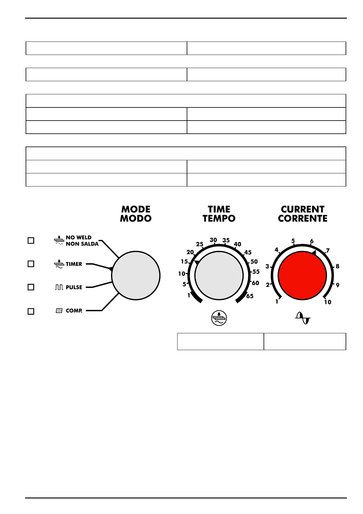 PARAMETRI REGOLAZIONE CONTROLLO DI SALDATURA TE25 - WELDING CONTROL UNIT TE25 PARAMETERS