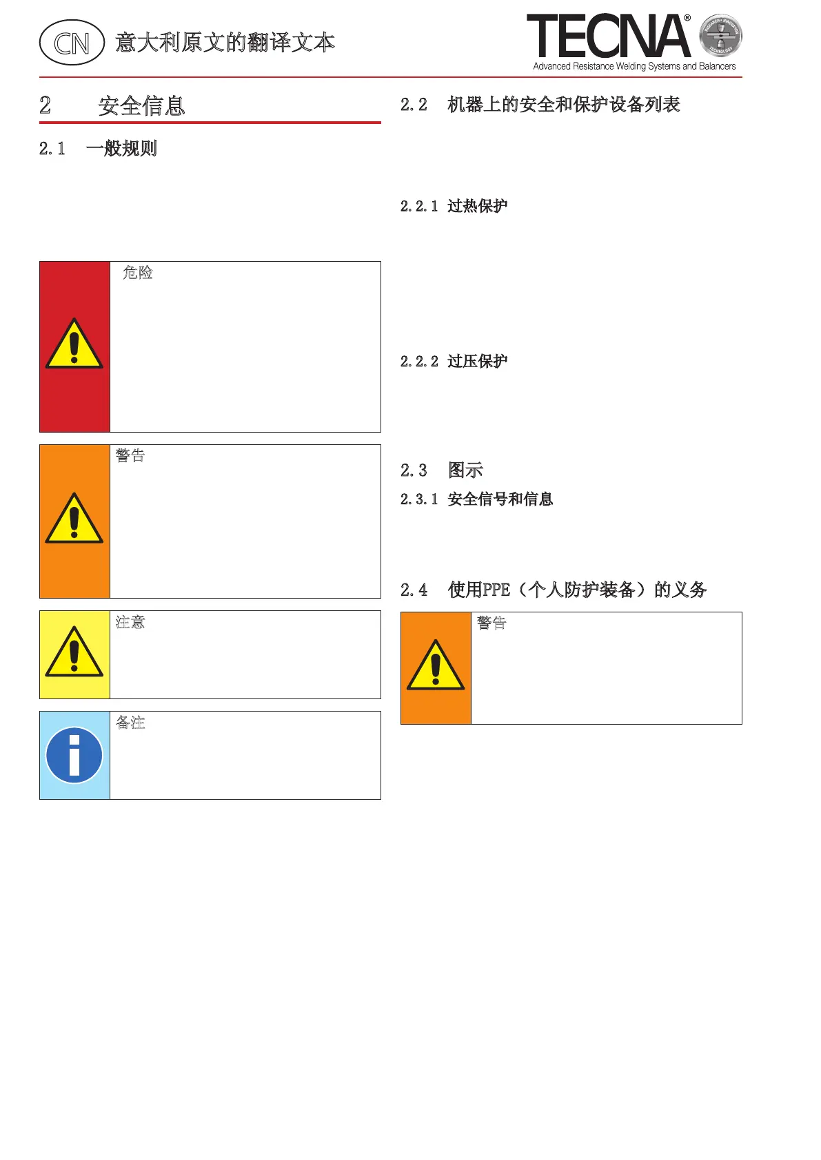 2.2 机器上的安全和保护设备列表