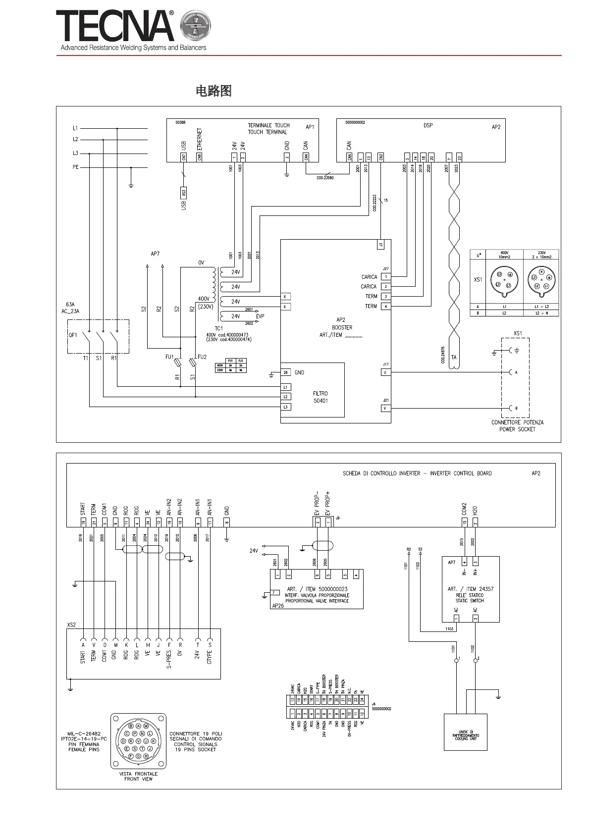 TECNA 3680 - Electrical Wiring Diagram; Main Power and Control Circuitry; Inverter Control Board and Connections