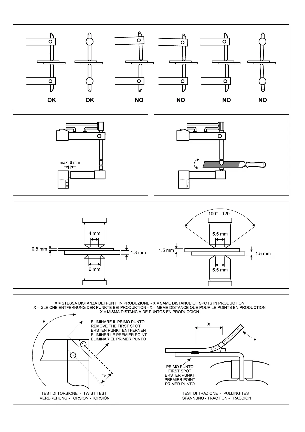 MESSA A PUNTO DELLA PUNTATRICE - ADJUSTING THE SPOT WELDER - REGLAGE DE LA SOUDEUSE PAR POINTS