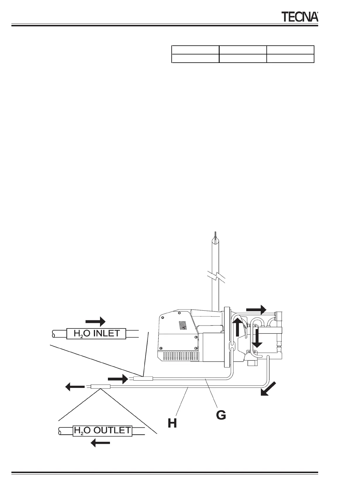 For a correct cooling of the welder it is necessary 150 l/h clean