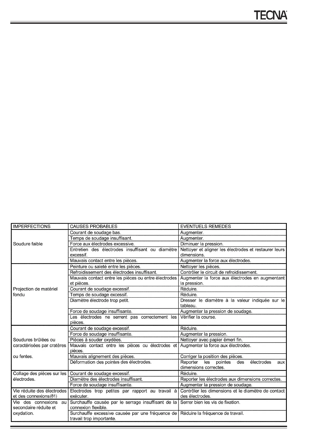 trop haute (tableau 4), le diamètre de la pointe de l’électrode soit