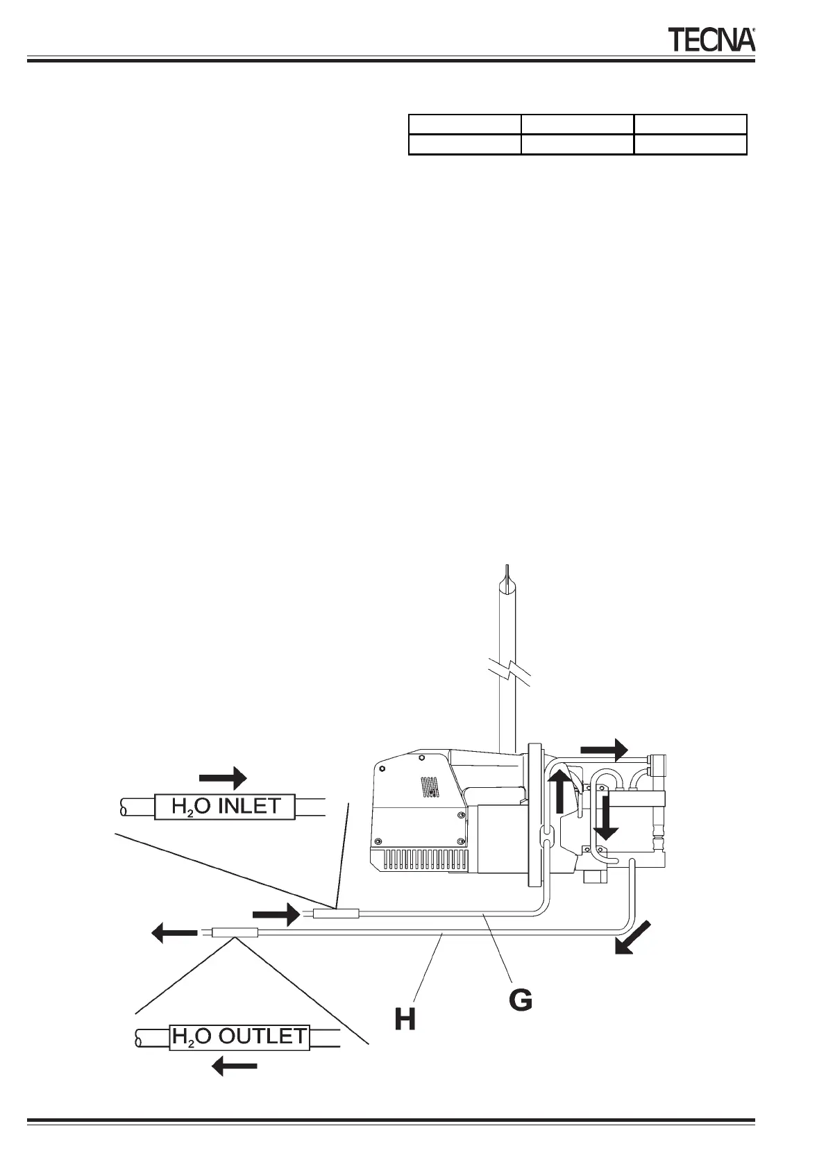 embalaje, y conectar la alimentación al tubo de entrada H
