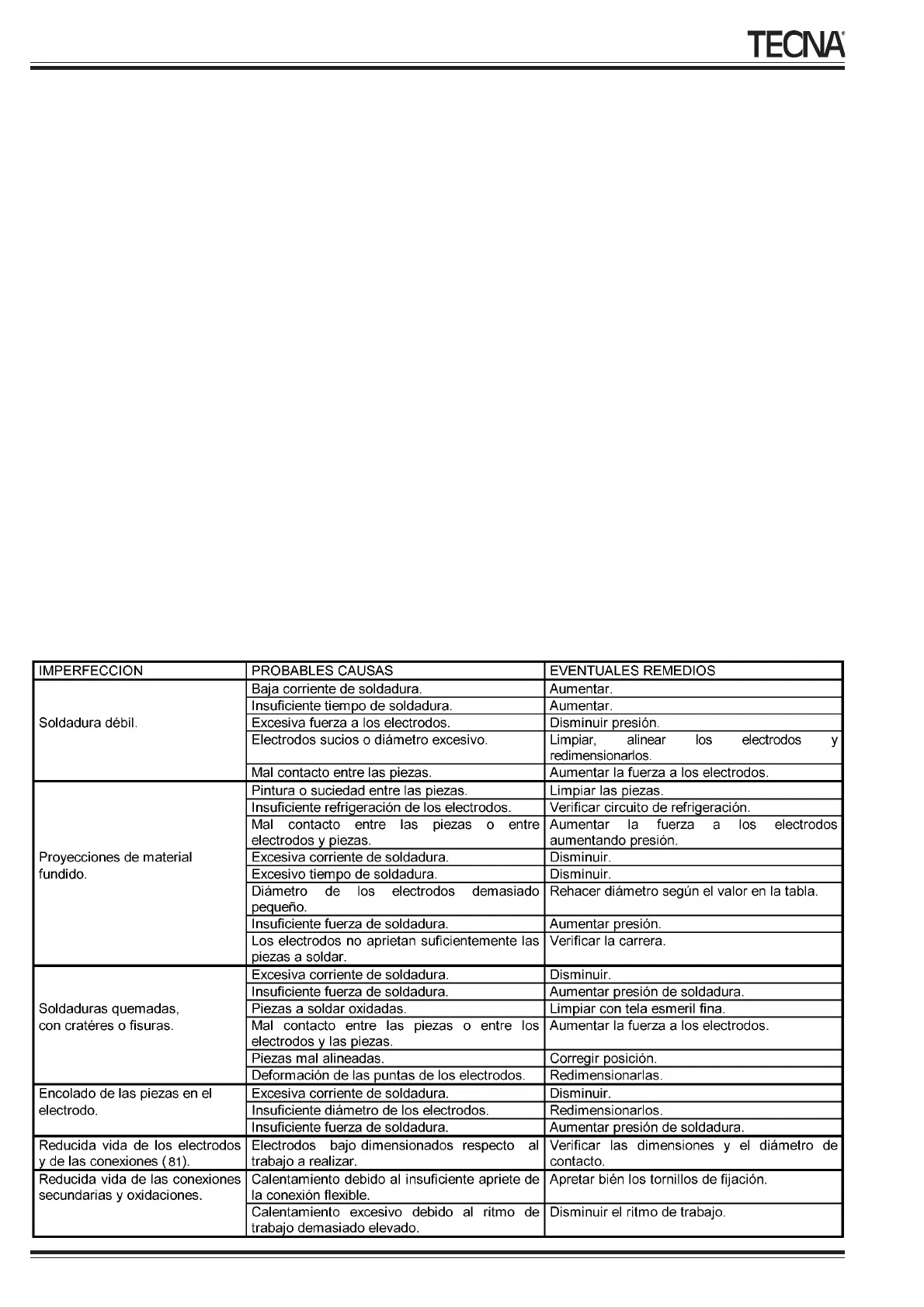 electrodos sea el correcto (tab.2), en los modelos refrigerados